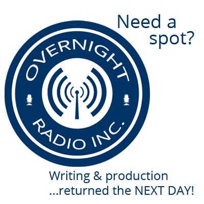 If you need top-notch radio spots turned around quickly, and affordably, we are Overnight Radio Inc, and we’re your team.